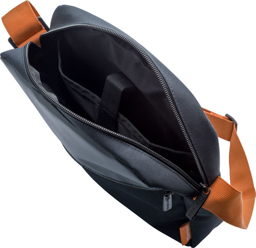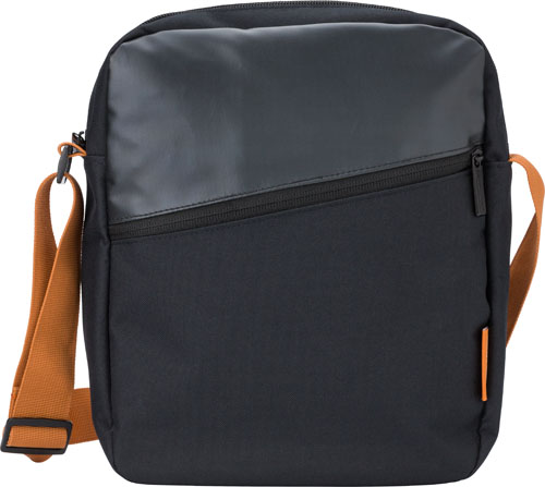 GETBAG Polyester (600D) shoulder bag, with a zippered main compartment, a zippered front pocket, an organizer, a padded tablet pocket, and an adjustable shoulder strap
