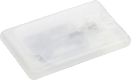 Antibacterial hand-spray packed in a promotional translucent PET credit card-shaped case (20ml). The frosted finish of the case makes your logo really stand out.