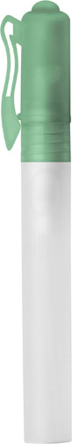 Handy promotional compact Hand Spray tube. The plastic casing comes with a clip on the cap. The frosted finish makes your logo really stand out. Perfect for travel-related branding.