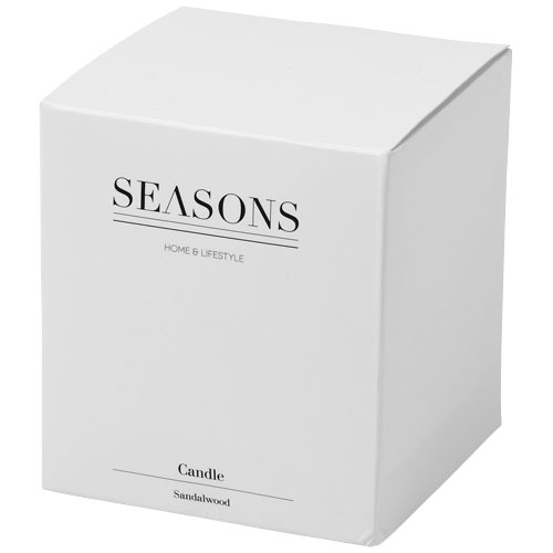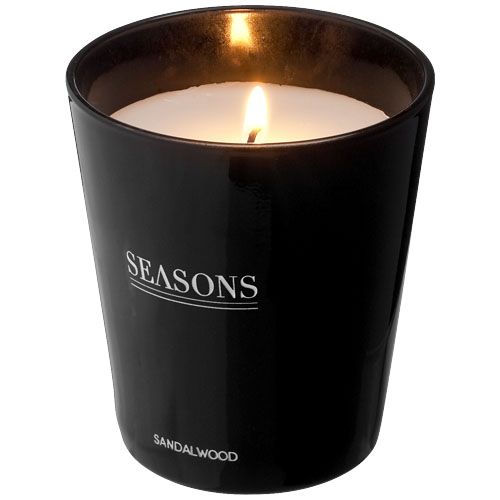 Cosy promotional Lunar scented candle encased in tempered glass. A must-have for every home. Exclusive scented candles with a light fragrance of white linen or sandalwood. The candle will burn for approximately 30 hours. Presented in a Seasons gift box. A quality product perfect for branding in the hospitality industry, but also as a promotional giveaway.
