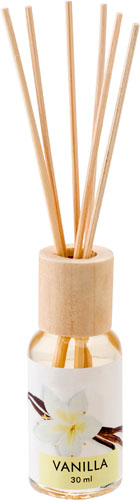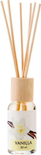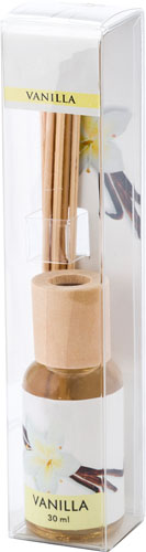 Relaxing promotional Reed Diffuser. Comes with a small glass bottle (30ml) of vanilla fragrance and with 6 reeds. A simple and always appreciated branded giveaway, but also a good addition to your corporate identity.