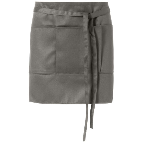 Place your business information on the promotional Lega Short Apron. Twill fabric apron with 3 pockets and 0.9m tie back closure. 65% polyester and 35% cotton.