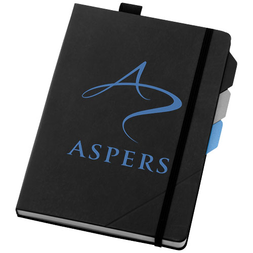 Alpha notebook incl. page dividers. Exclusive design notebook with 96 sheets (100gsm) lined paper, elastic closure and 3 page dividers which can be used as marker or to identify sections. The Alpha also includes an inner pocket at the back to store notes and business cards and a pen loop attached on one of the page dividers. Packed in a Marksman gift box. Leather paper covered cardboard.