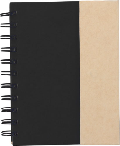 Wire bound notebook with a magnetic closure, contains one 7,5 x 5cm sticky note pads, four x 25 sheet page memos, a sixty page double sided lined note pad and a ballpen, black ink