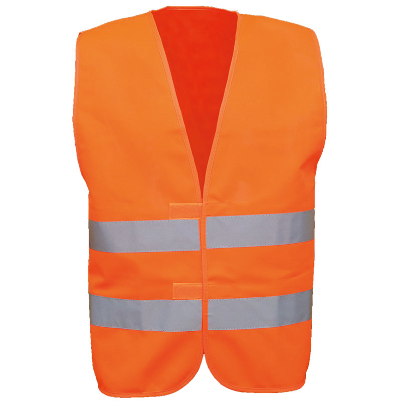Safety-warning vest according to EN ISO 20471:2013, class 2 material from 100% polyester, double and adjustable Velcro fastening with two reflective stripes. Size: unisize succession article of the safety vest ALF124 (68 x 66 cm) in yellow and the ALF124 in orange