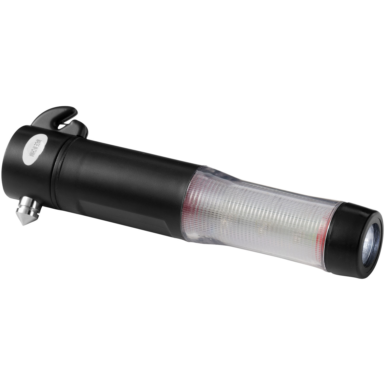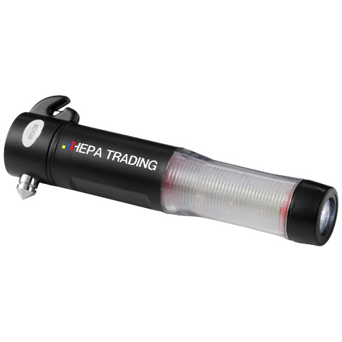 Your business logo on the promotional Multifunction Car Emergency Torch. The torch illuminates up to 200m. Includes window hammer, safety belt cutter, and built-in magnet for attaching to vehicles. Lasts up to 36 hours when used as a torch (using one super bright LED) or up to 48 hours when used to flash red emergency signal (using 9 LEDs). Packed in a STAC gift box. Batteries included and inserted. Exclusive design. ABS plastic.