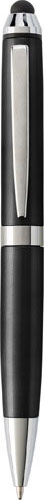 Plastic ballpen with metal tip, clip, and ring, and a rubber tip suitable for capacitive screens, black ink
